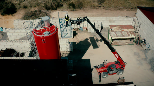 - Jag kör alla slags maskiner här på firman. Vi har både grävmaskiner, hjullastare, dumprar och lastbilar. Här på på betongstationen har jag kört en hel del med vår Manitou MT1840HA som vi har haft i två år sedan vi köpte den från Scantruck AB. Här står bokstaven ”A” för acces, vilket betyder att den är utrustad för att köras med personkorg, och det är det redskapet och gafflar som vi använt mest här under bygget av betongstationen. Det är en smidig maskin att köra, och den har en fantastisk räckvidd på 18m, berättar Martin Fast.
